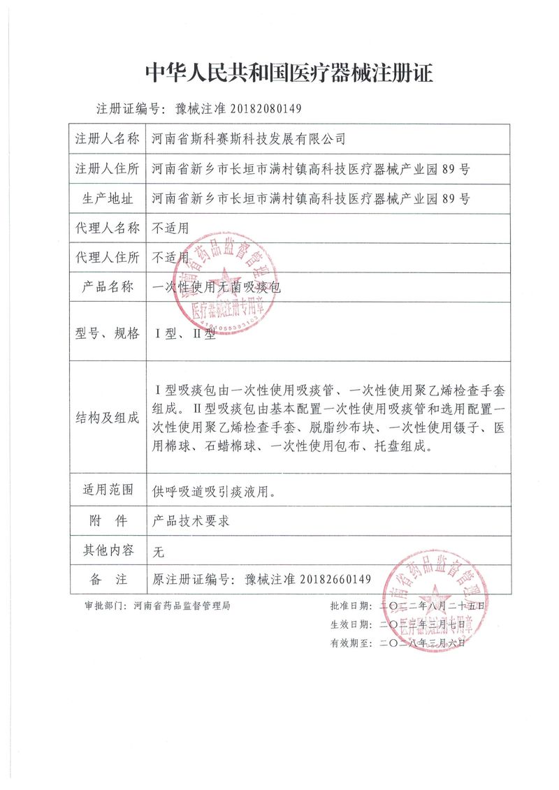 一次性使用無(wú)菌吸痰包 延續(xù)22.8.25